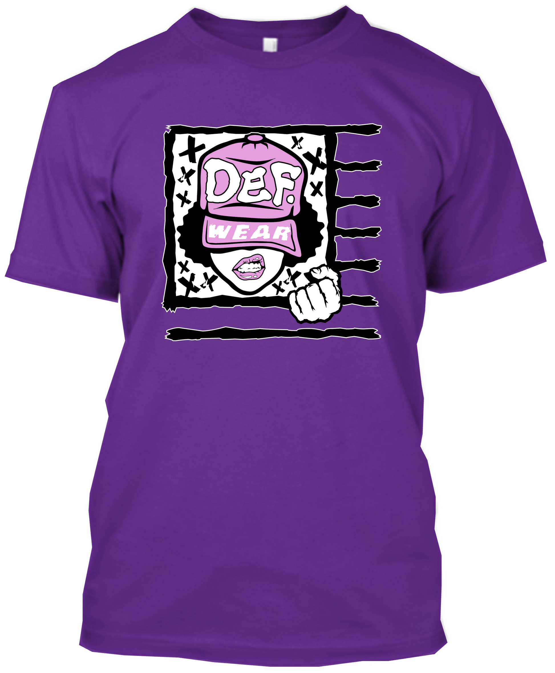Bad girl with Defiant fist forward. In the style of an old postage stamp. The image is printed on a soft, 100 percent ring spun cotton t-shirt.
